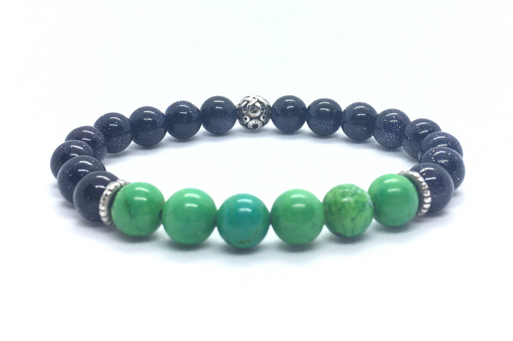 Green Agate, Blue Sandstone & Sterling Silver Bracelet