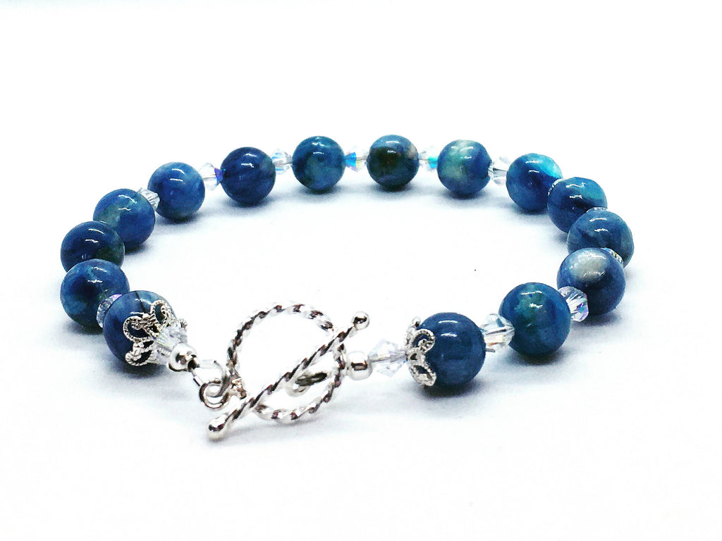 Kyanite, Swarovski Crystals and Sterling Silver Bracelet